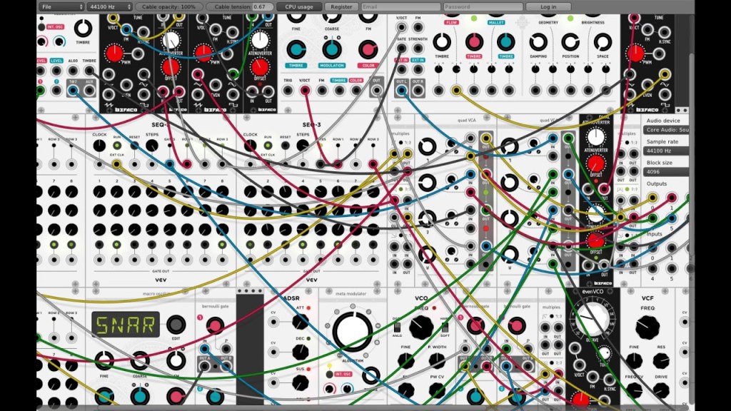 Of course there are pros and cons to each platform. Monetarily, Ableton is paid and VCV Rack is free (there is a paid version but to my knowledge right now most everything is achievable in the free version). The Ableton user interface is a bit more digestible and is inherently integrated with TouchDesigner through TDAbleton, compared to the VCV Rack interface (above), which takes inspiration from classic node-based audio synthesizers, and can get pretty chaotic. VCV Rack also does not have native integrations with TouchDesigner, but again through OSC data and specific plugins this is made easier.