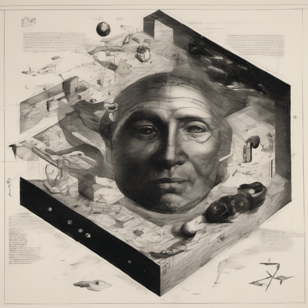 Interesting that the seemingly maximally creative singular best piece of art ever created by an AI would be of a dark cube-like shape... a black box if you would, burst open to reveal the visage of a human head. As with all great art I'll leave it up to audience interpretation, since again with the AI image itself there is no inherent meaning other than what we make of it.